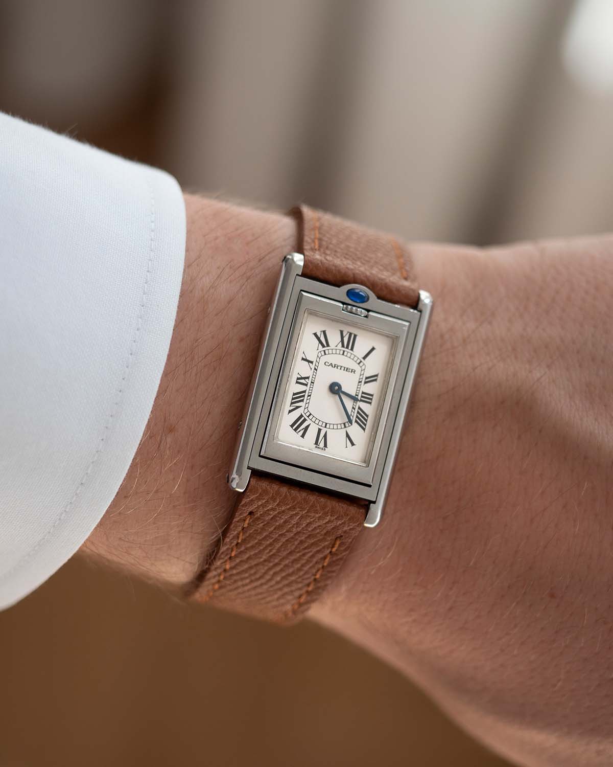 Water can damage a leather watch strap and cause it to stain, discolour or deteriorate prematurely. If you do get your leather strap wet: gently brush off the water using a soft, absorbent cloth, and then let it dry naturally.