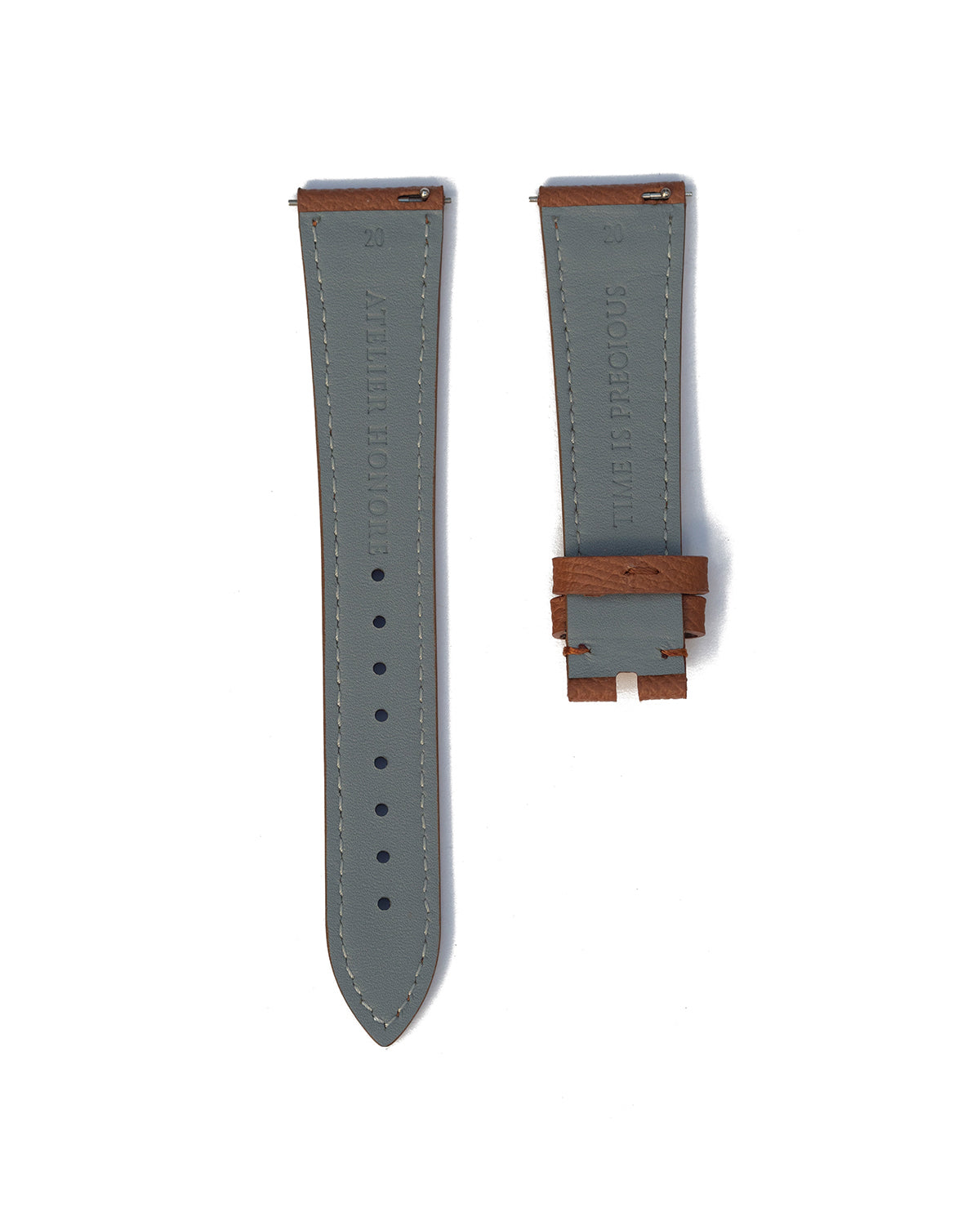 This full grain leather strap comes in two lug widths: 18 and 20mm. Both are tapered down to fit a buckle/clasp of 16mm.