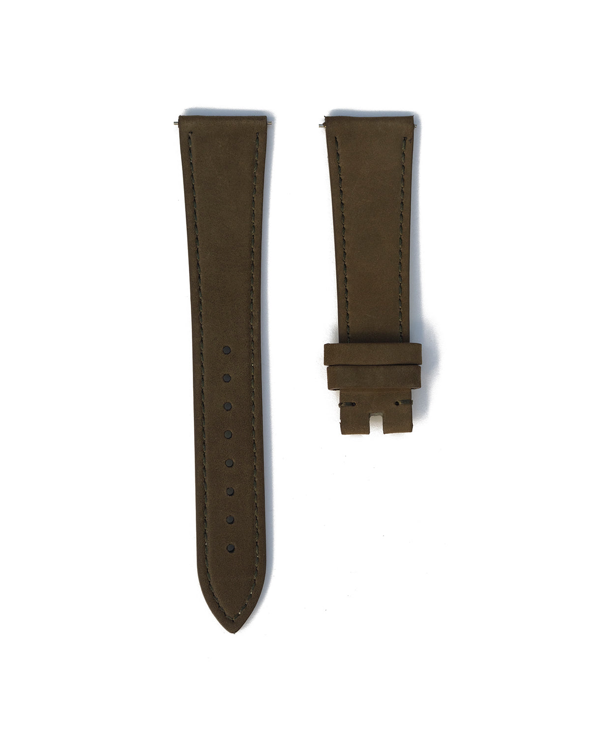 This nubbuck leather strap comes in two lug widths: 18 and 20mm. Both are tapered down to fit a buckle/clasp of 16mm.